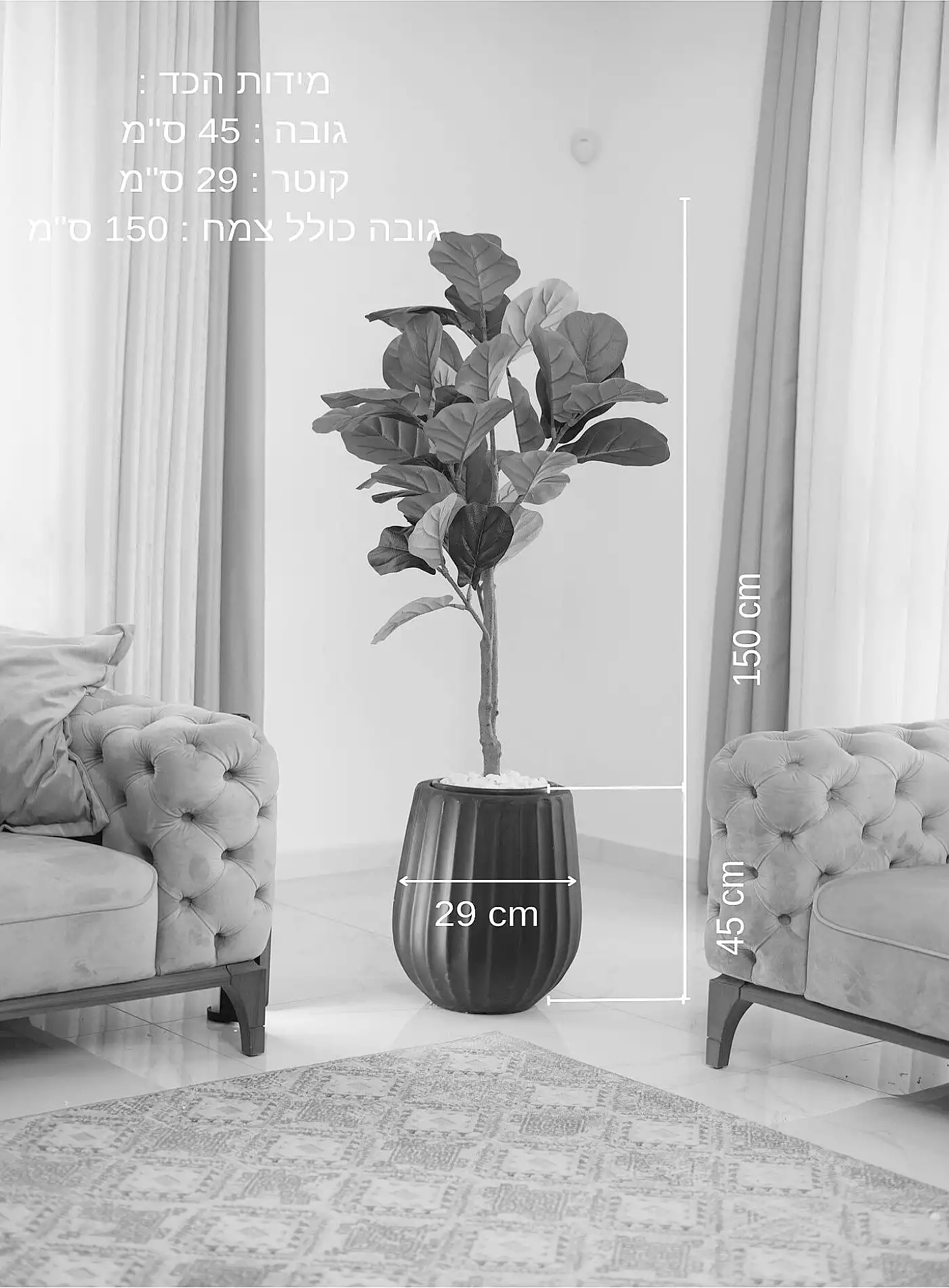 כד מדגם ELEGANCE מעוצב עם פסים עדינים, שמוסיפים מגע של אלגנטיות לכל חלל. הדגם מגיע בארבעה צבעים אלגנטיים: לבן, שחור ואפור. שמתאימים לכל עיצוב פנים. הפסים הדקים נותנים לכדים מראה מודרני ומרשים, בעוד שהגימור האיכותי מבטיח תחושת יוקרה וסטייל. הכד כולל צמח פיקוס כינורי מלאכותי, שמוסיף טבע ורעננות, ומביא את העיצוב לרמה גבוהה. כדים אלו הם הבחירה המושלמת לשדרוג הבית או המשרד, ומציעים מראה יוקרתי ותחזוקה קלה.