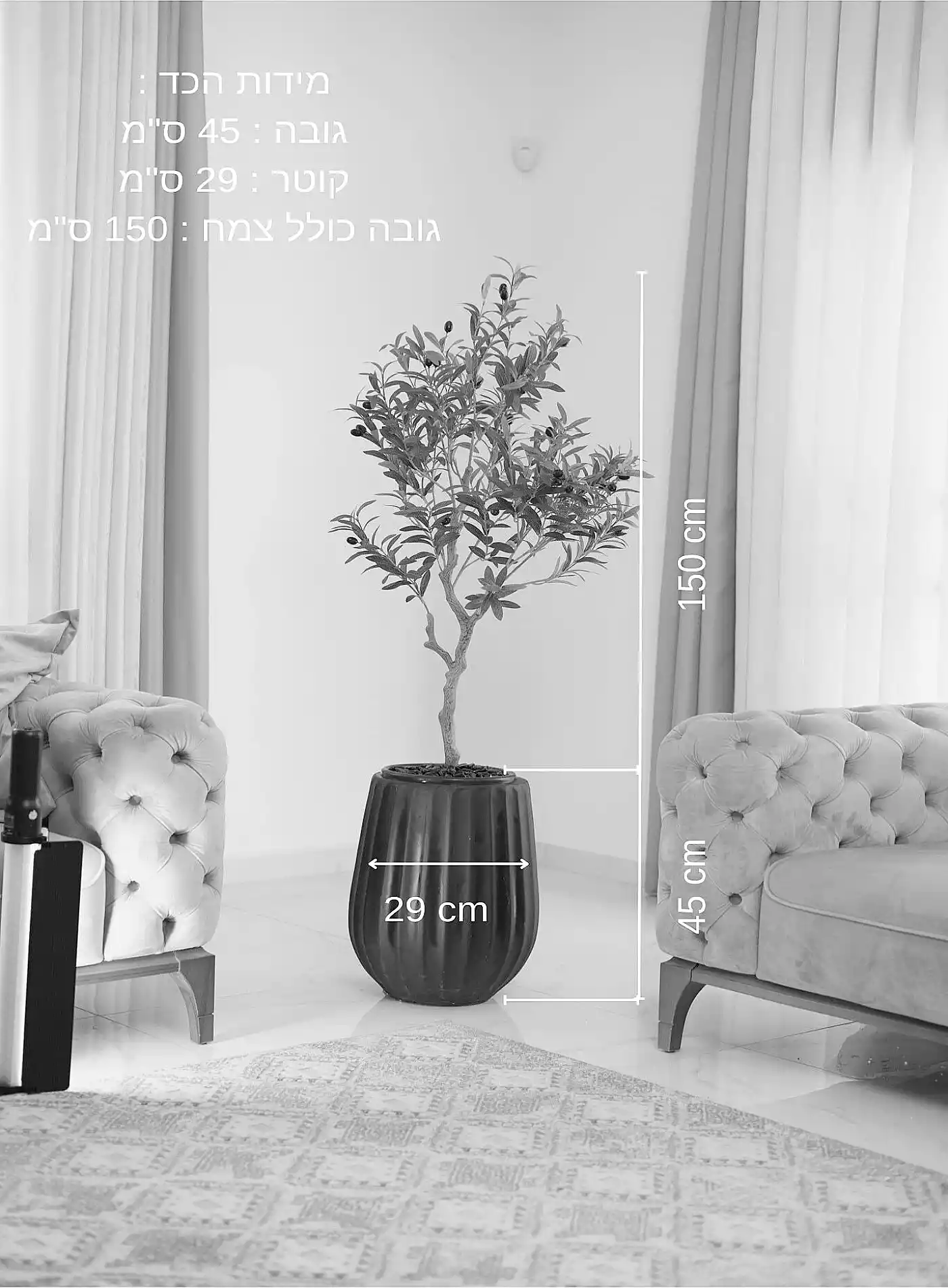 כד מדגם ELEGANCE מעוצב עם פסים עדינים, שמוסיפים מגע של אלגנטיות לכל חלל. הדגם מגיע בשלושה צבעים אלגנטיים: לבן, שחור ואפור, שמתאימים לכל עיצוב פנים. הפסים הדקים נותנים לכדים מראה מודרני ומרשים, בעוד שהגימור האיכותי מבטיח תחושת יוקרה וסטייל. הכד כולל צמח עץ זית מלאכותי, שמוסיף טבע ורעננות, ומביא את העיצוב לרמה גבוהה. כדים אלו הם הבחירה המושלמת לשדרוג הבית או המשרד, ומציעים מראה יוקרתי ותחזוקה קלה.