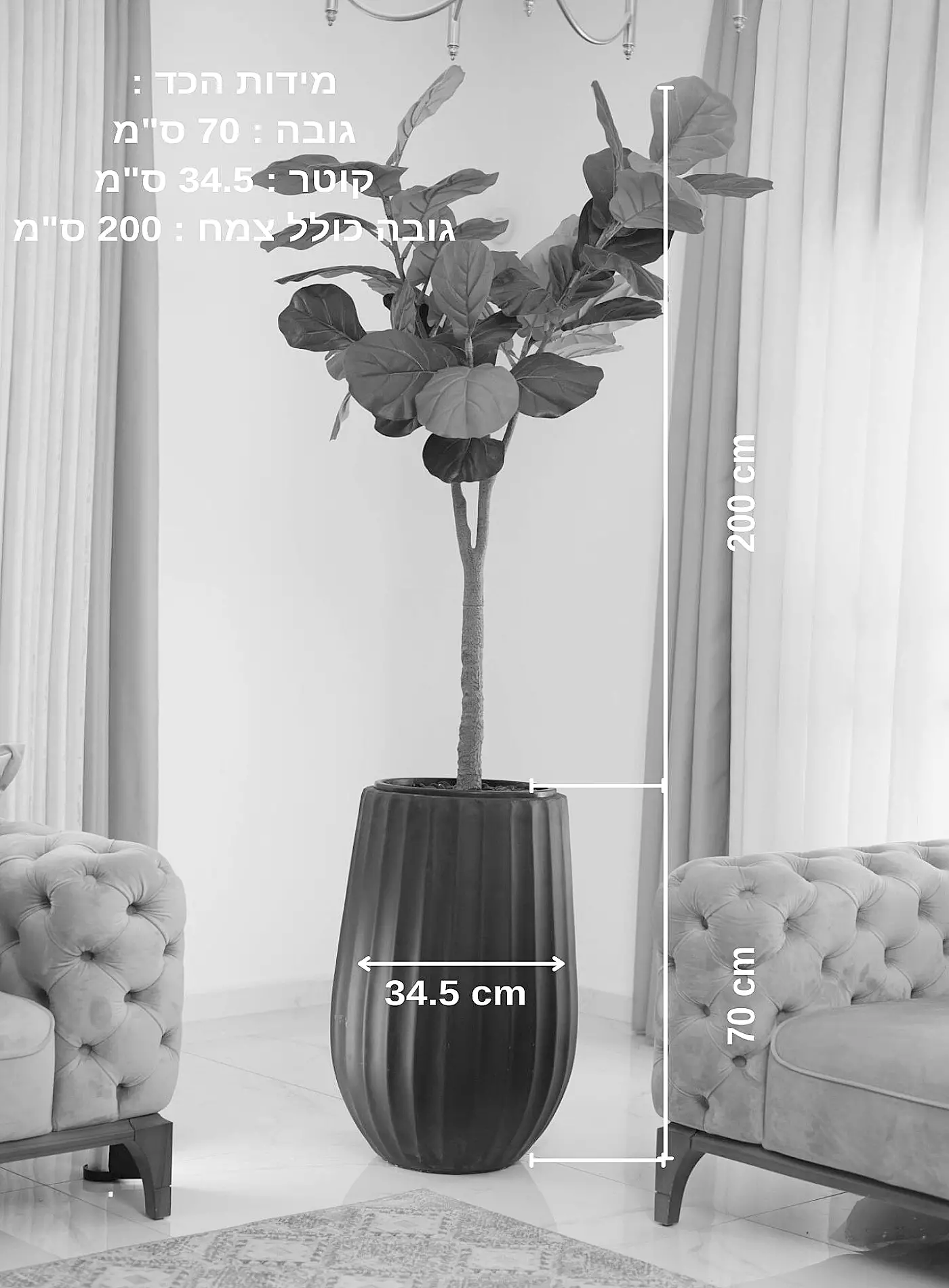כד מדגם ELEGANCE מעוצב עם פסים עדינים, שמוסיפים מגע של אלגנטיות לכל חלל. הדגם מגיע בשלושה צבעים אלגנטיים: לבן, שחור ואפור, שמתאימים לכל עיצוב פנים. הפסים הדקים נותנים לכדים מראה מודרני ומרשים, בעוד שהגימור האיכותי מבטיח תחושת יוקרה וסטייל. הכד כולל צמח פיקוס כינורי מלאכותי, שמוסיף טבע ורעננות, ומביא את העיצוב לרמה גבוהה. כדים אלו הם הבחירה המושלמת לשדרוג הבית או המשרד, ומציעים מראה יוקרתי ותחזוקה קלה.