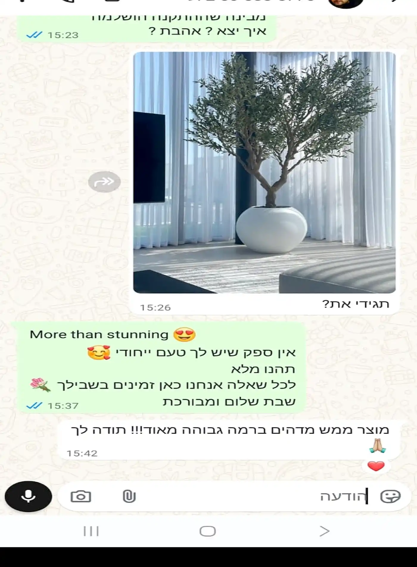 העציץ מוסיף תחושת רוגע, ניקיון אסתטי ואווירה של בית מעוצב ברמה הגבוהה ביותר — ללא תחזוקה, ללא לכלוך, רק נוכחות עוצמתית ויופי שנשאר לאורך שנים.