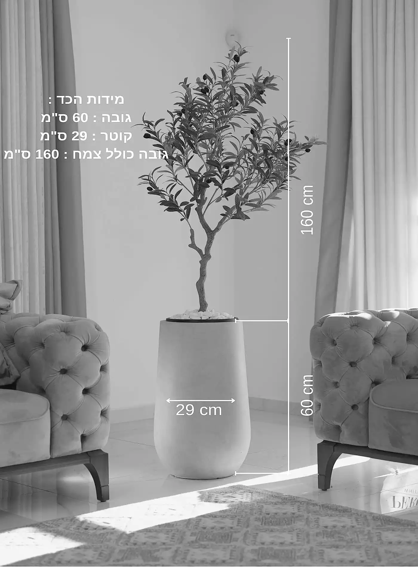 כד Serenity 60 בשילוב עץ זית מלאכותי קטן